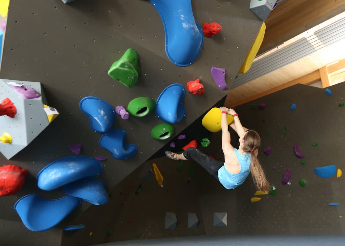 Beginne mit einfachen Routen: Auch wenn die Herausforderung lockt – starte mit leichten Routen (meist in den Farben Weiß, Gelb oder Blau markiert). So lernst du die grundlegenden Bewegungen und entwickelst ein Gefühl für die Wand.